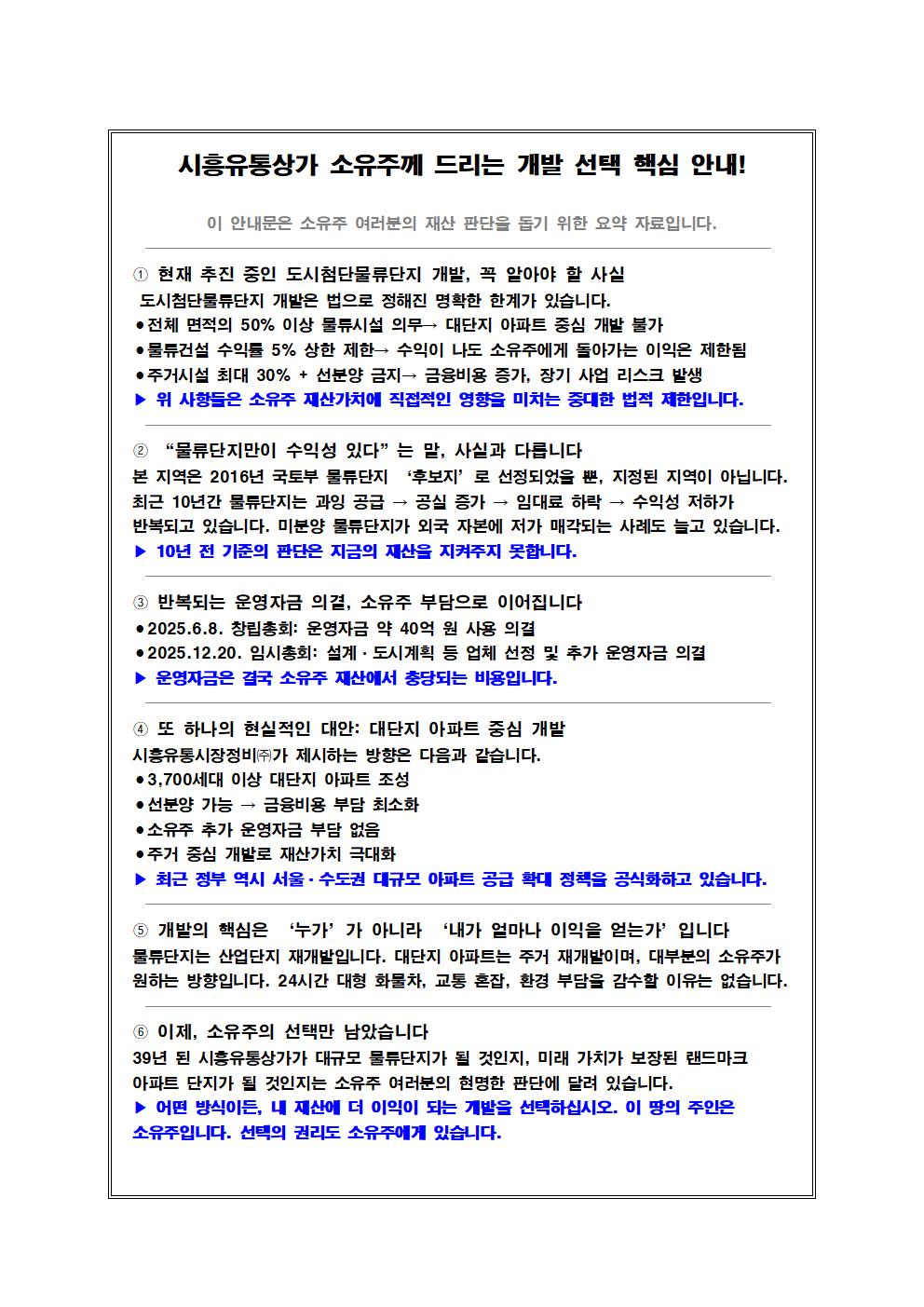 시흥유통상가 소유주께 드리는 개발 선택 핵심 안내!